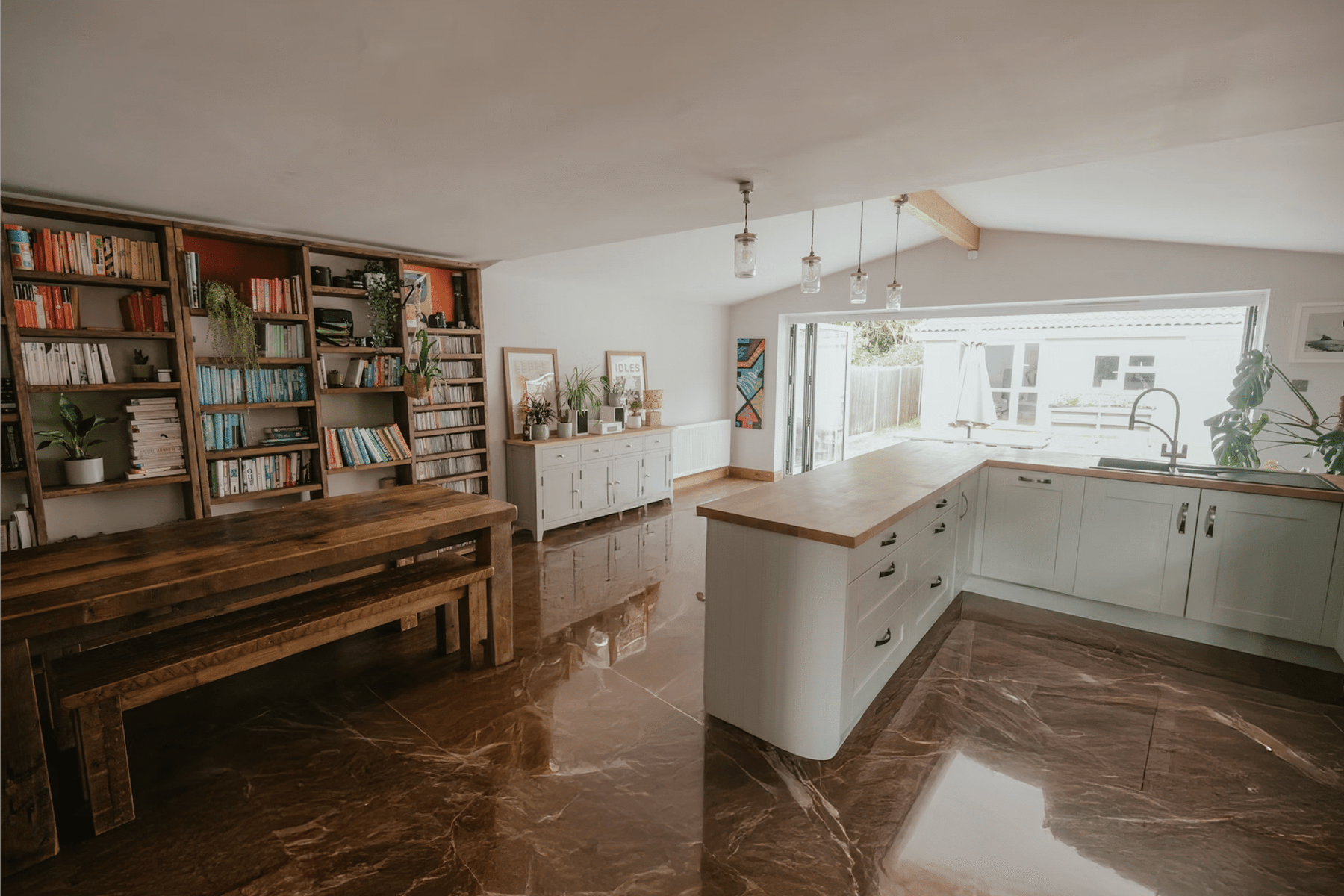 We wanted our dining space to feel rich and intimate so Rosewood was the perfect choice. It hides wear beautifully and adds a dramatic flair.